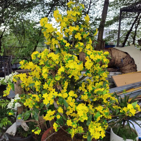 cây mai thật gắn hoa vãi decor tết
